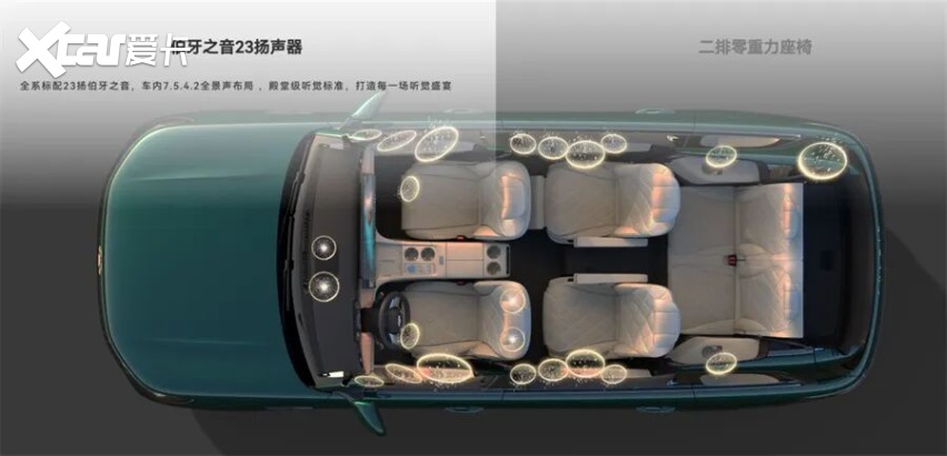 舒适装备:一二排电动调理负压吸风式通风+加热、三排50D舒适性海绵、全车静音玻璃+ENC自动降噪,三温区空调带二排操控屏,256色气氛灯;