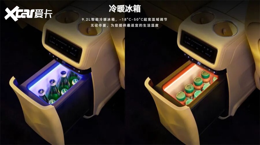 舒适装备:主驾晋级卷帘式弹性腿托,添加双侧小桌板,9.2L电动智能冰箱成为标配;
